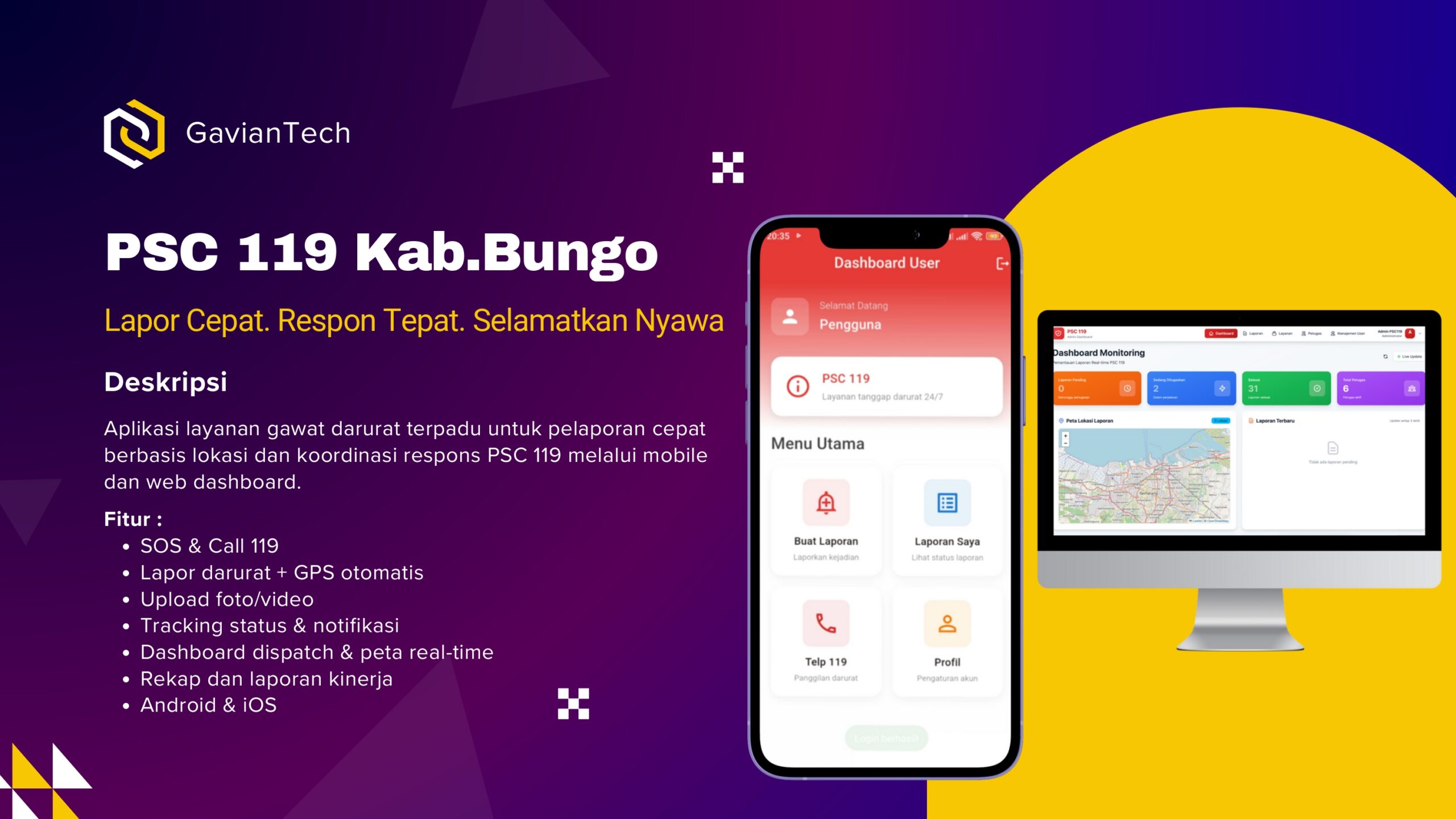 Aplikasi PSC 119 Dashboard Realtime + App Mobile adalah platform terintegrasi yang dirancang untuk memudahkan pemantauan dan pengelolaan layanan PSC 119 secara real-time. Aplikasi ini menggabungkan kemampuan dashboard yang kuat dengan kemudahan akses melalui aplikasi mobile, menyediakan pengalaman pengguna yang efisien untuk personel dan tim yang terlibat dalam operasi darurat dan penanganan kasus. Fitur Utama: […]